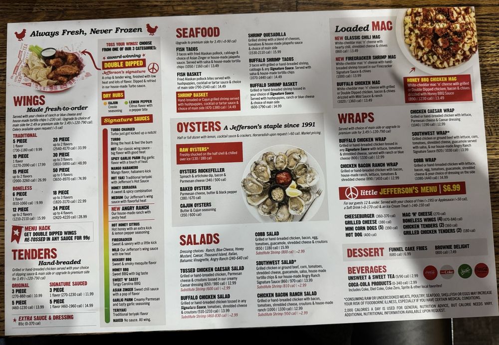 At Jefferson's, the ambiance is casual, yet lively, making it an ideal spot for families and friends. The attentive service, coupled with the vibrant atmosphere and delicious food, ensures a memorable dining experience. Be sure to visit and indulge in what Jefferson's has to offer!
